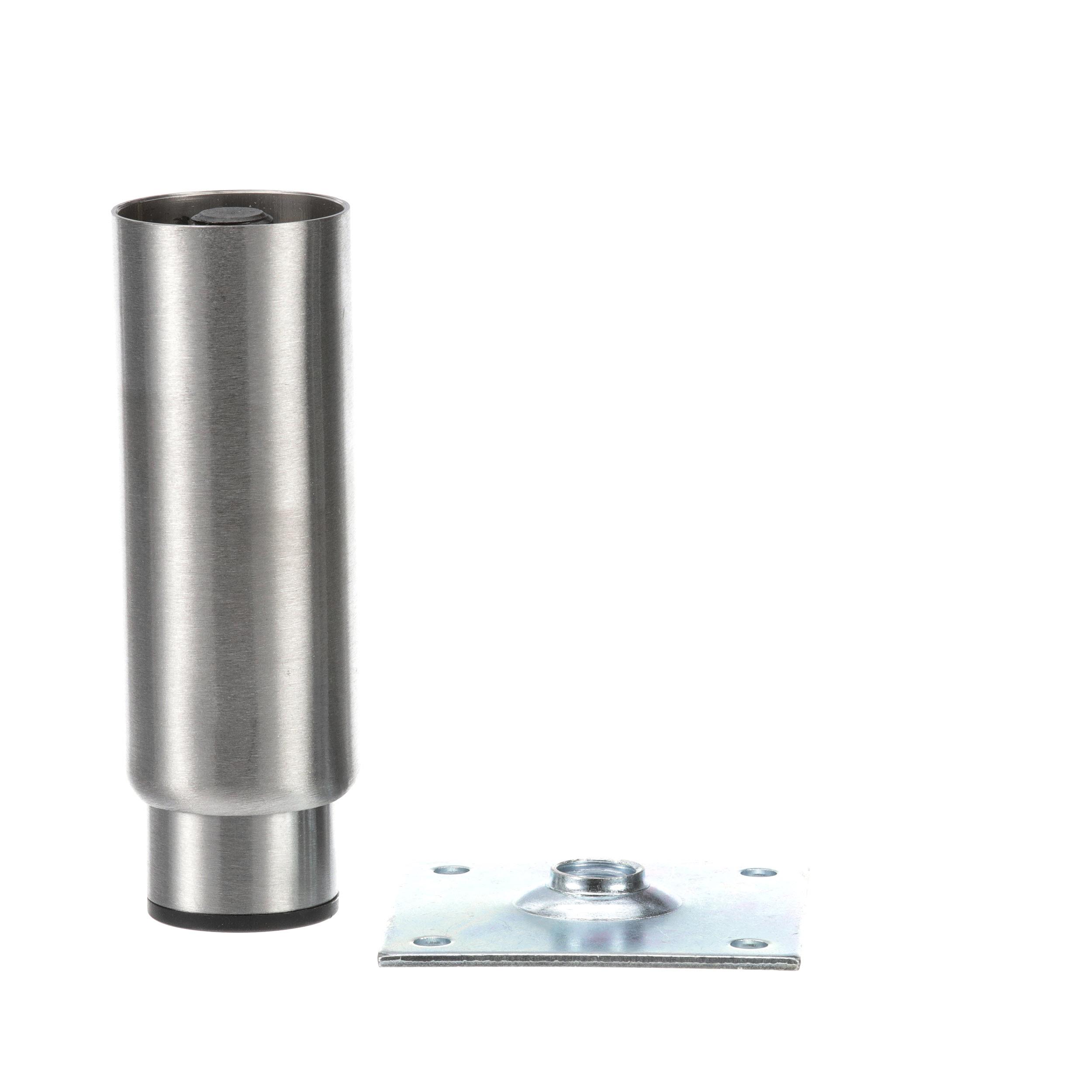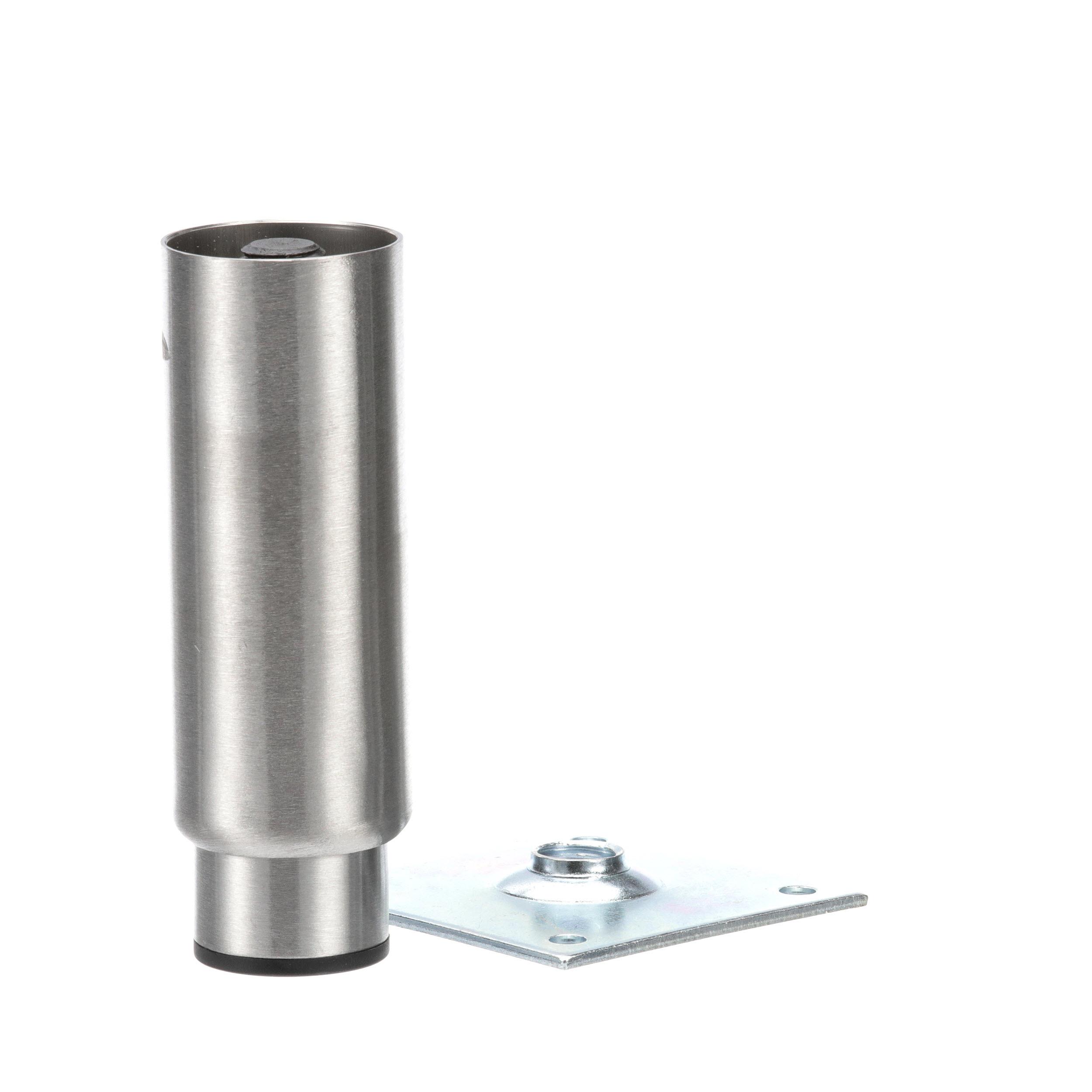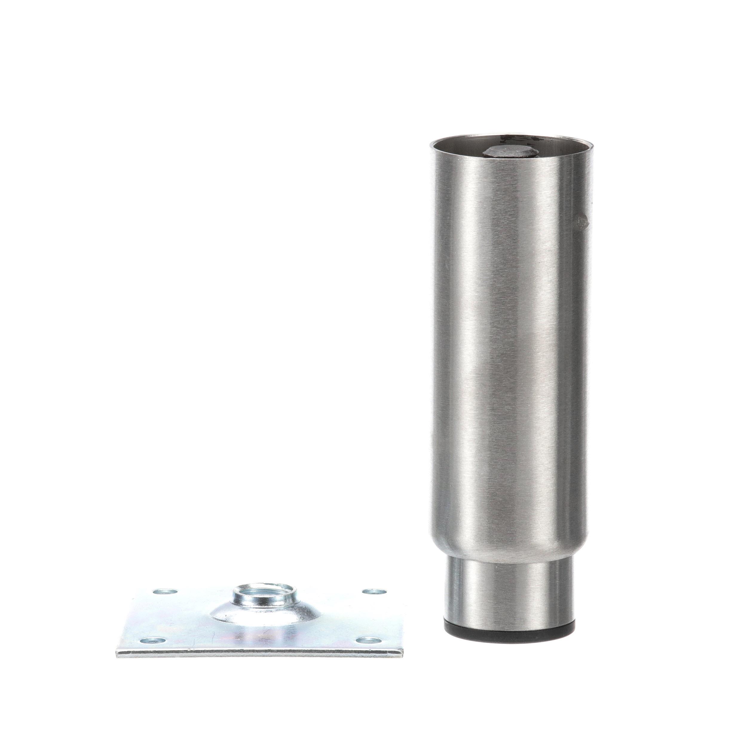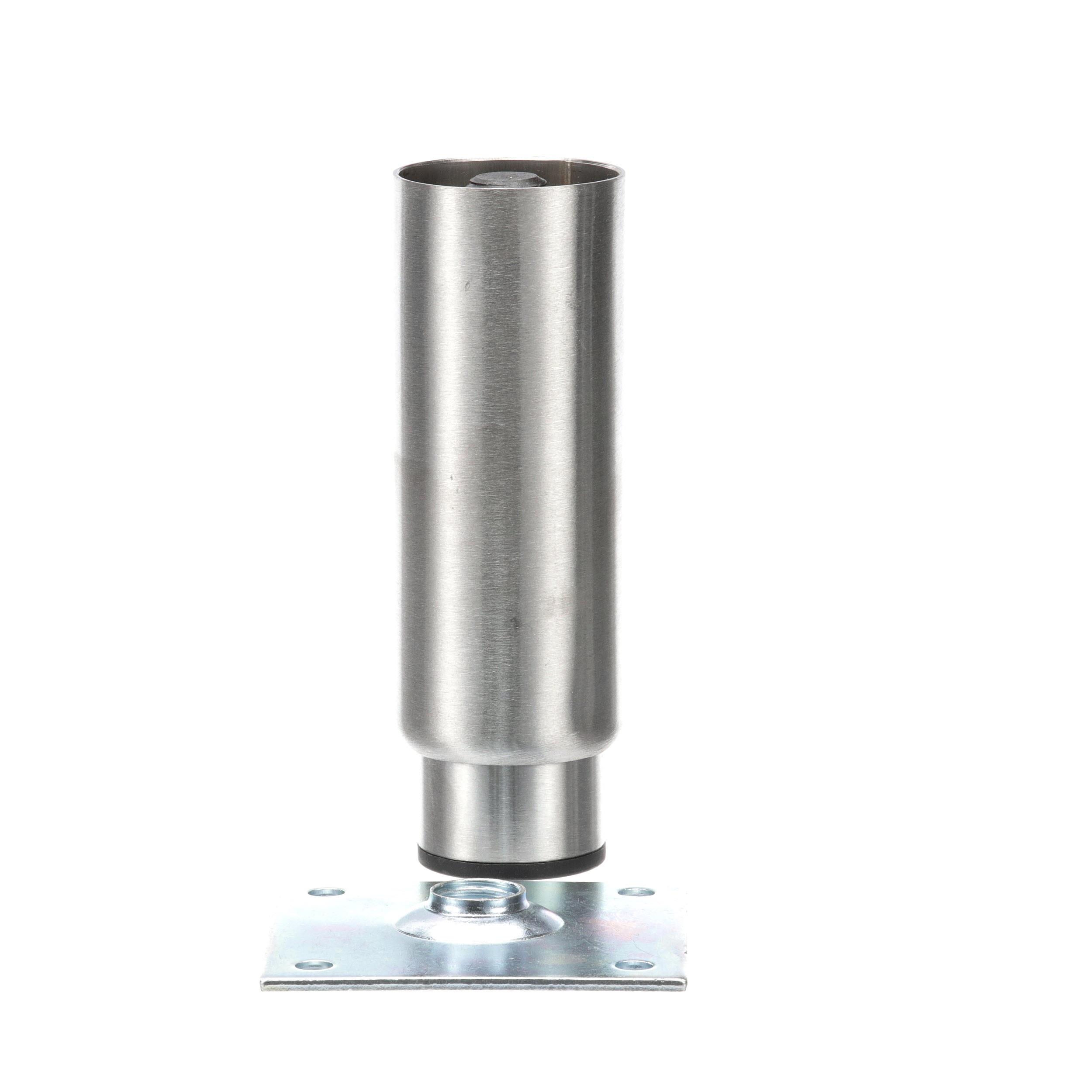 - 2" OD x 6" H Stainless Steel Heavy Duty Equipment Leg With 3-1/2" Square Removable Mounting Plate And 3" Adjustable Black Nylon Toe