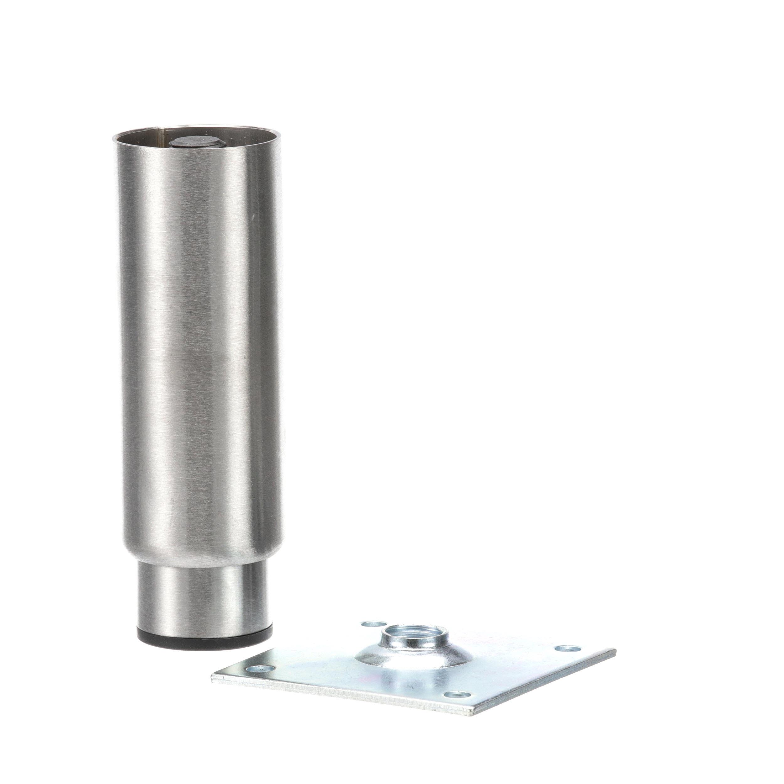 2" OD x 6" H Stainless Steel Heavy Duty Equipment Leg With 3-1/2" Square Removable Mounting Plate And 3" Adjustable Black Nylon Toe