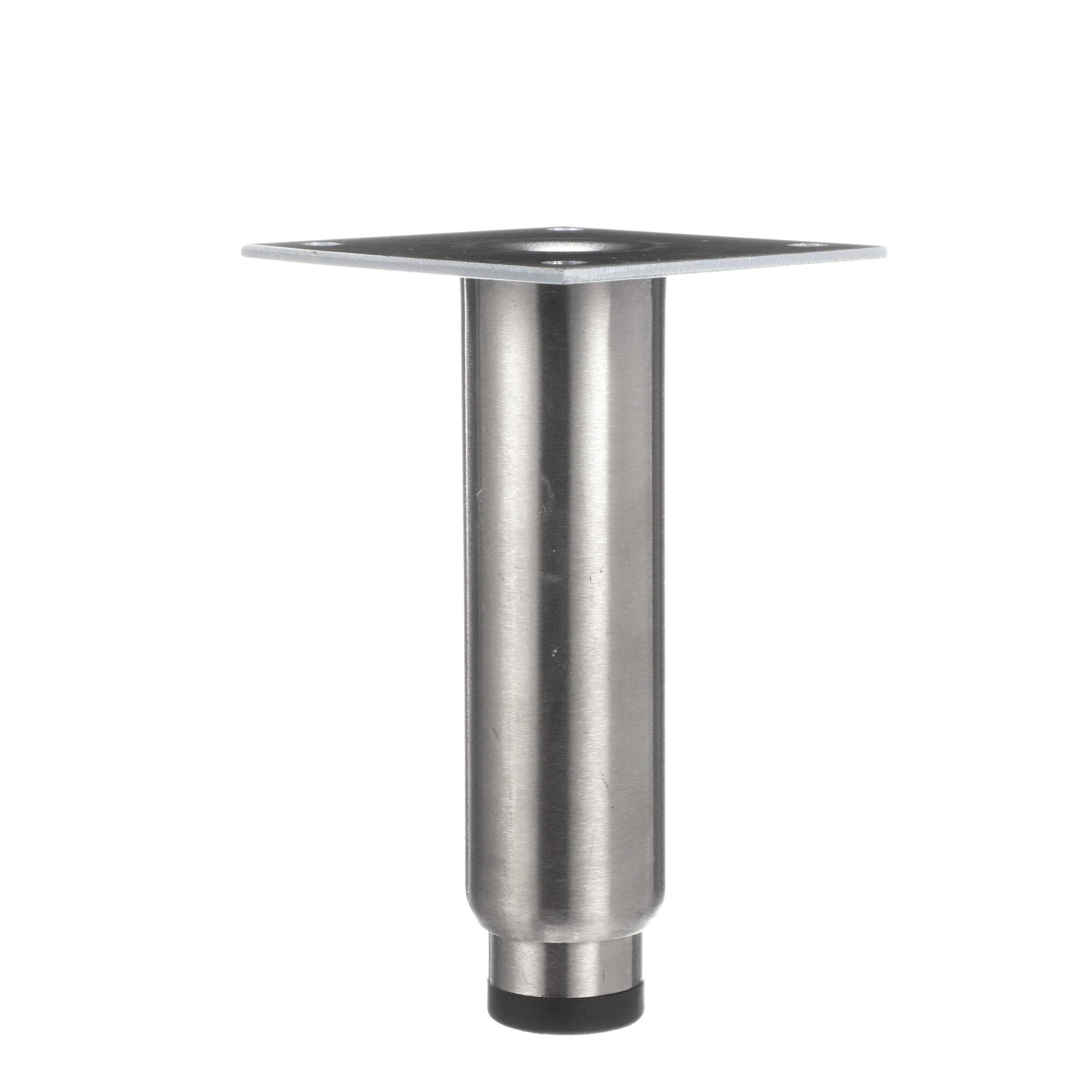 - 1-5/8" OD x 6" H Stainless Steel Heavy Duty Equipment Leg With 3-1/2" Square Removable Mounting Plate And Adjustable Black Nylon Toe
