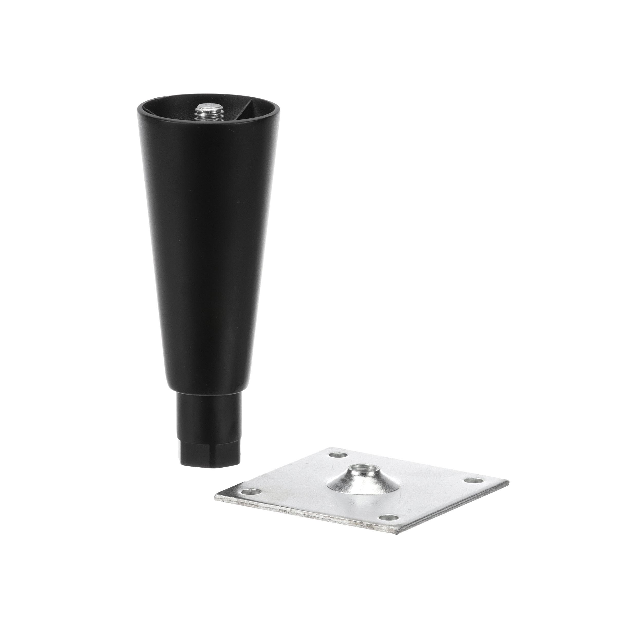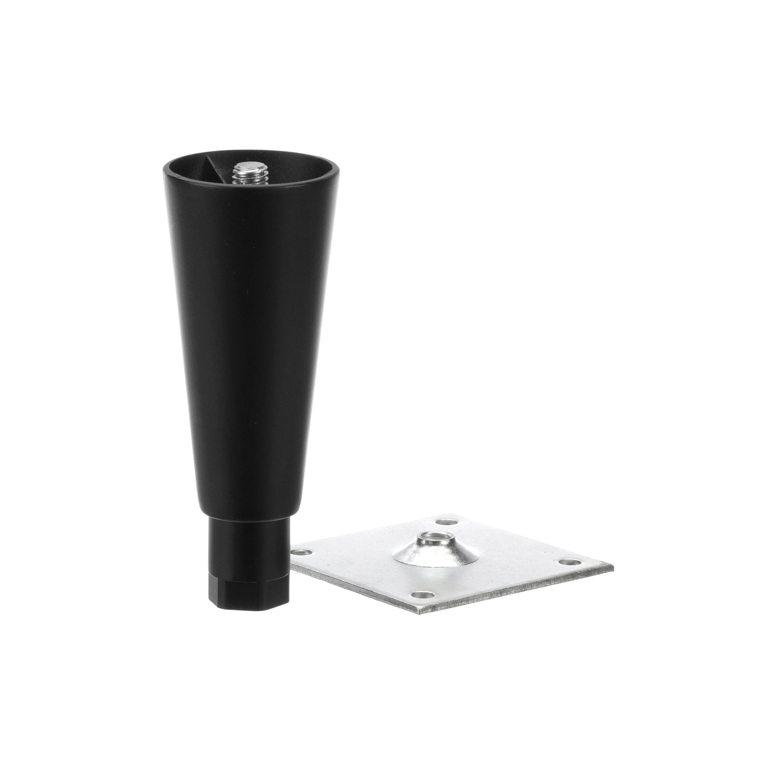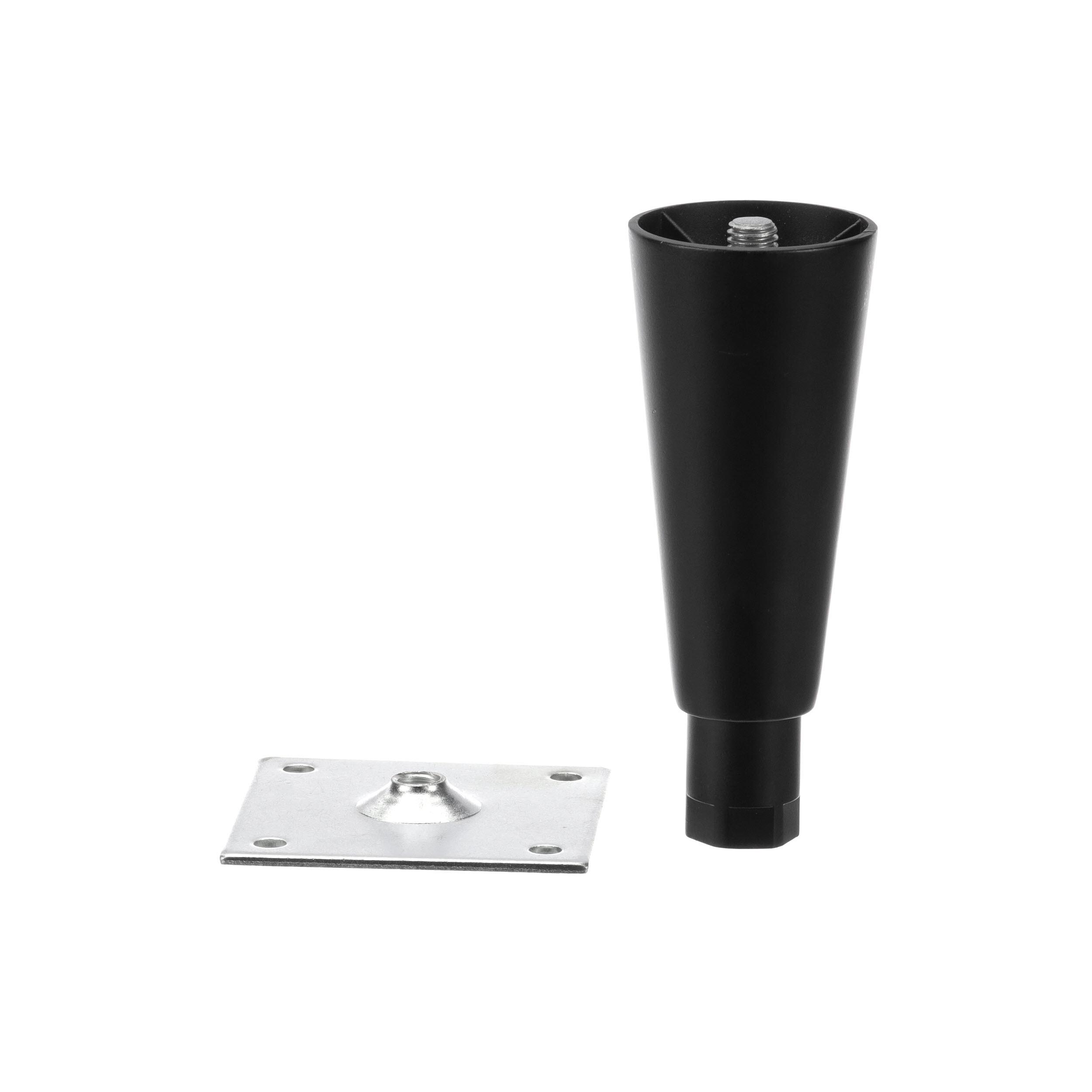 - 6" H Black Epoxy Die Cast Equipment Leg With 3-1/2" Square Removable Mounting Plate And Adjustable Hex Toe