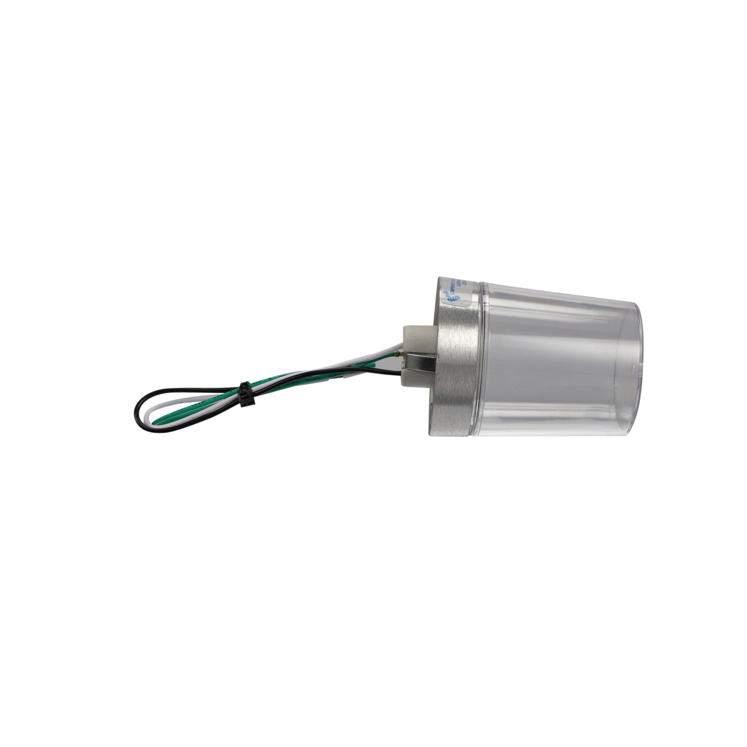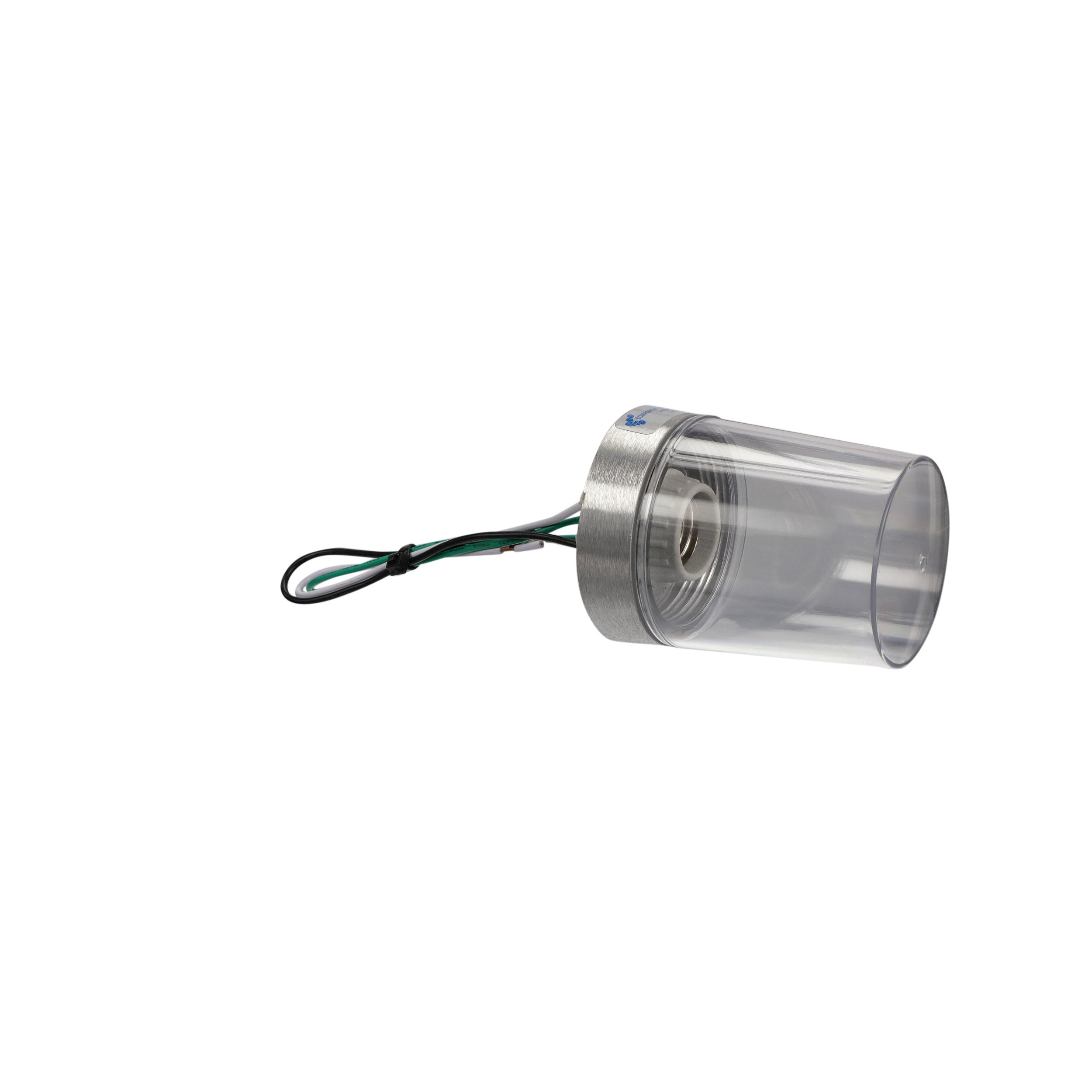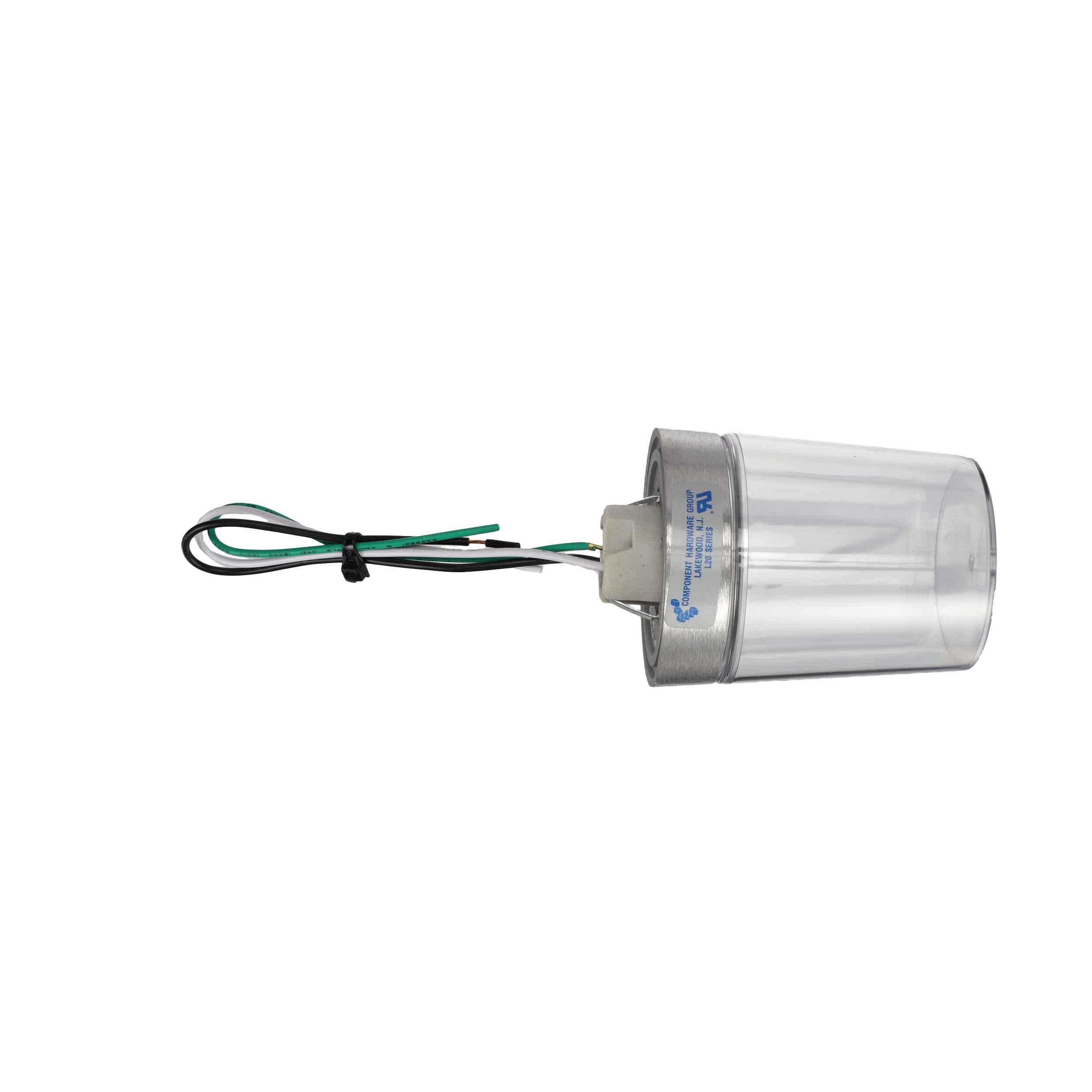 - Brushed aluminum housing and impact resistant clear polycarbonate globe provides the utmost in sanitation and protection