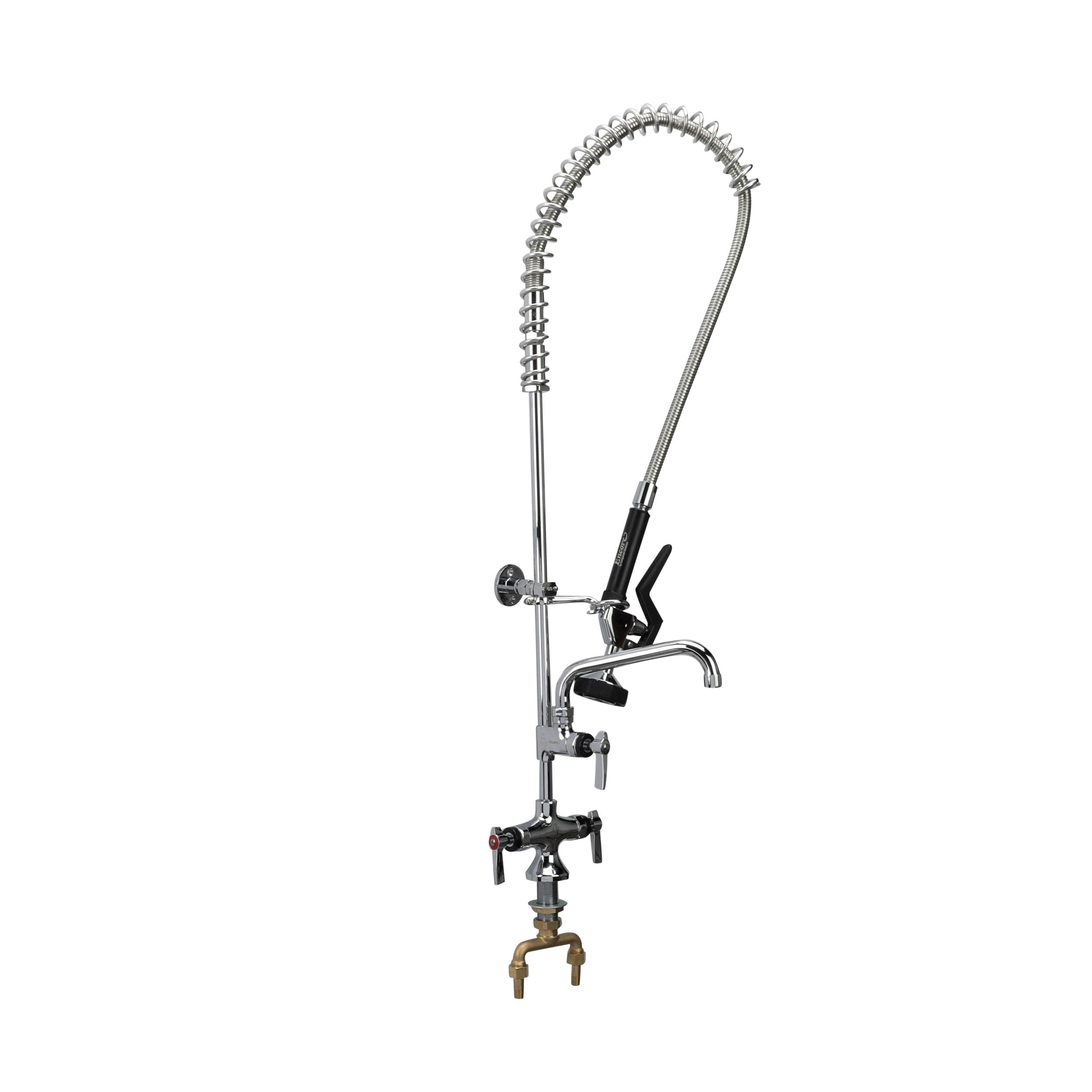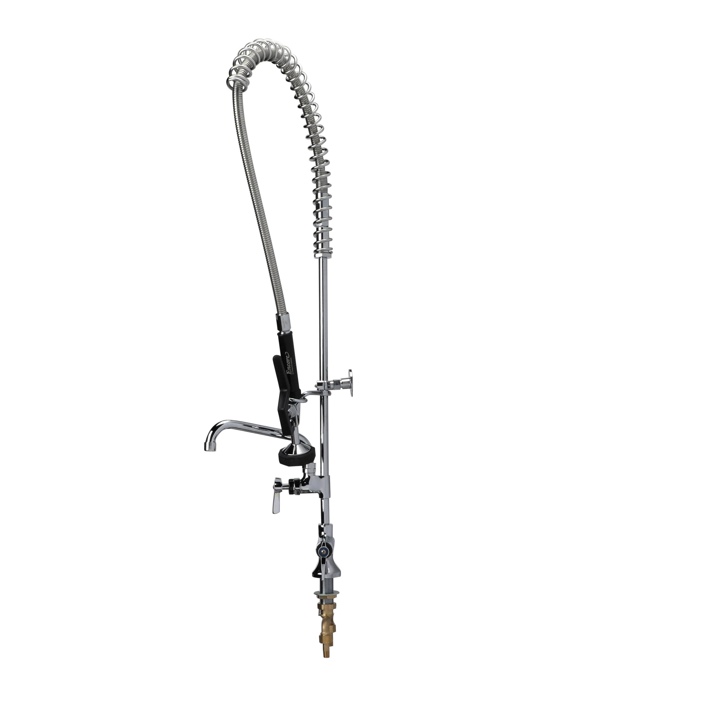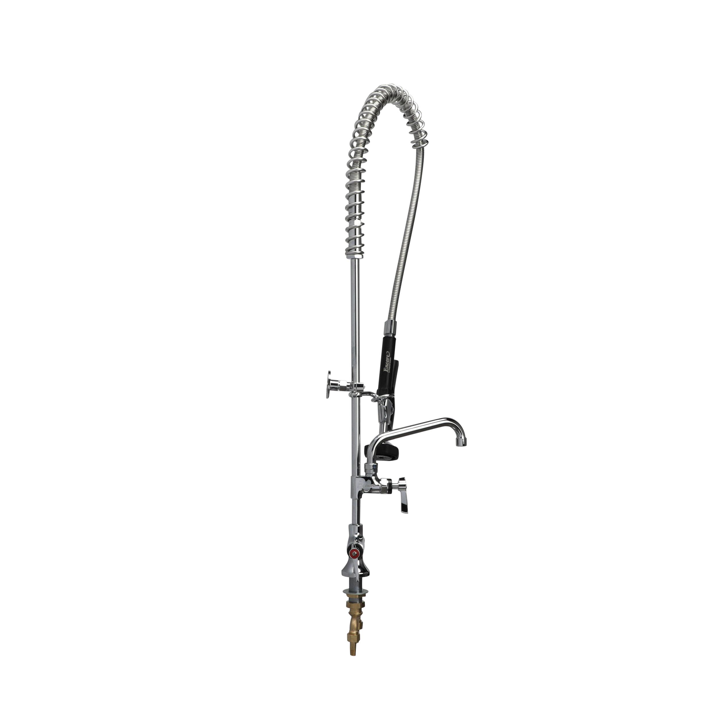 Encore Single Hole Deck Mount Pre Rinse Assembly with Wall Bracket, Stainless Steel Spring and 8" Add On Faucet