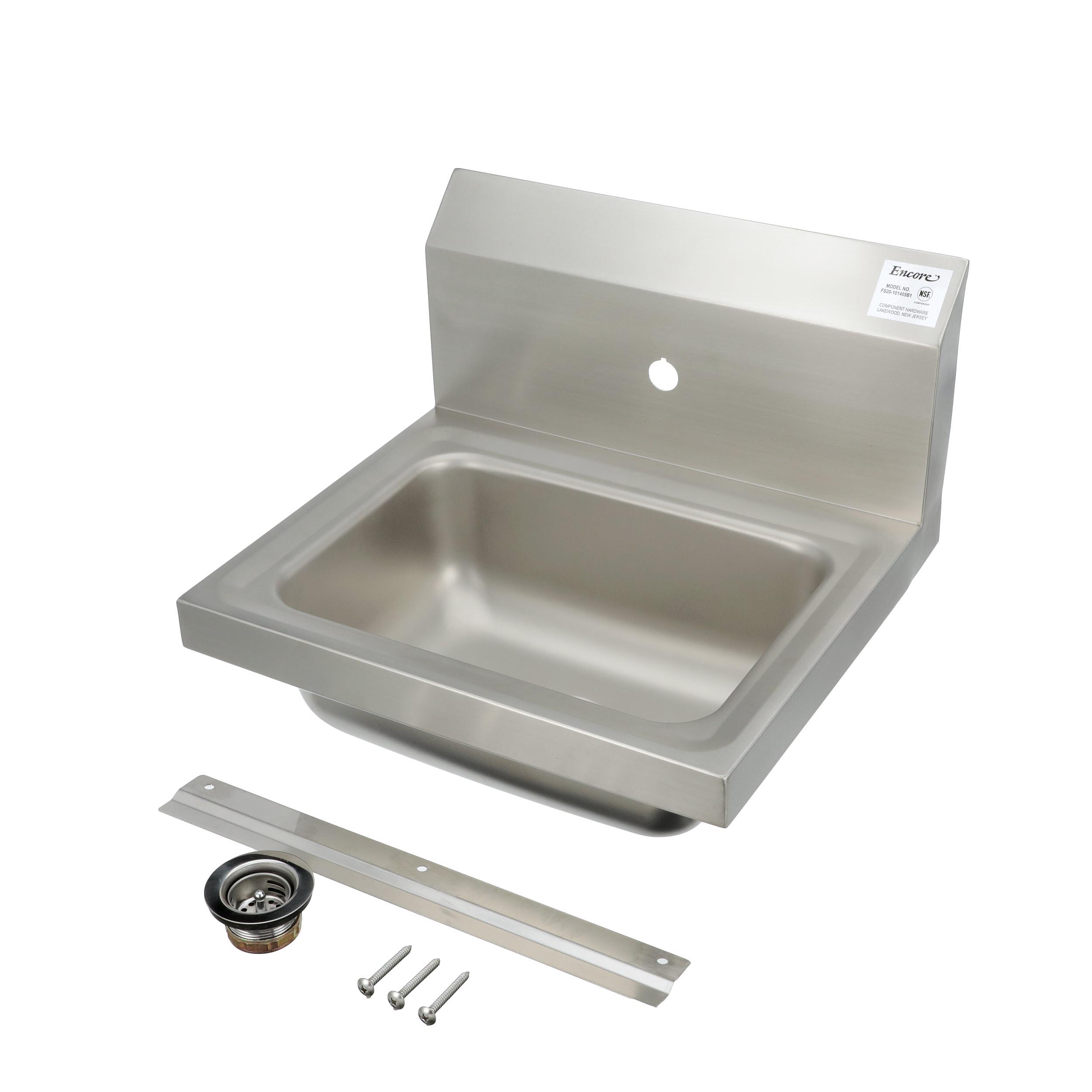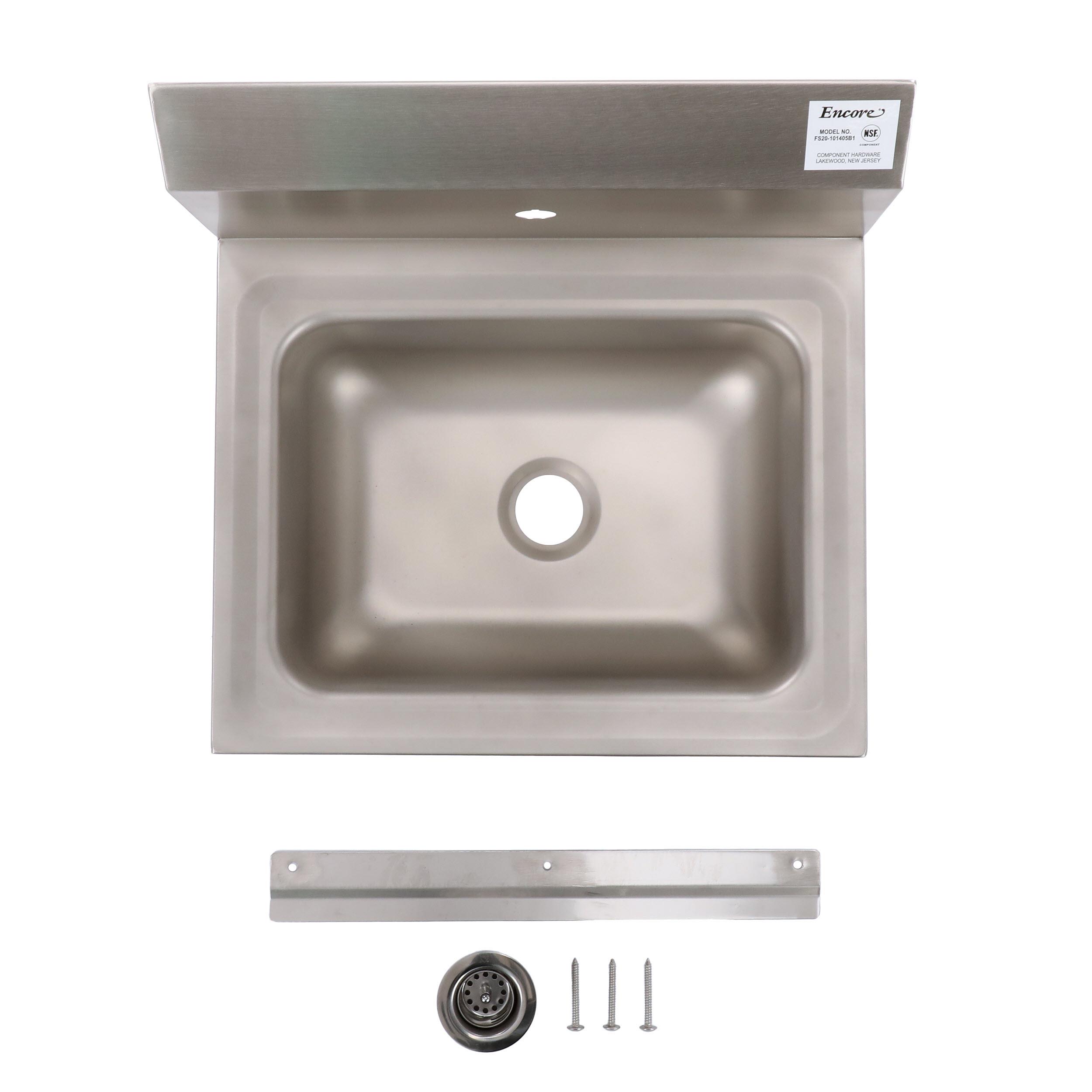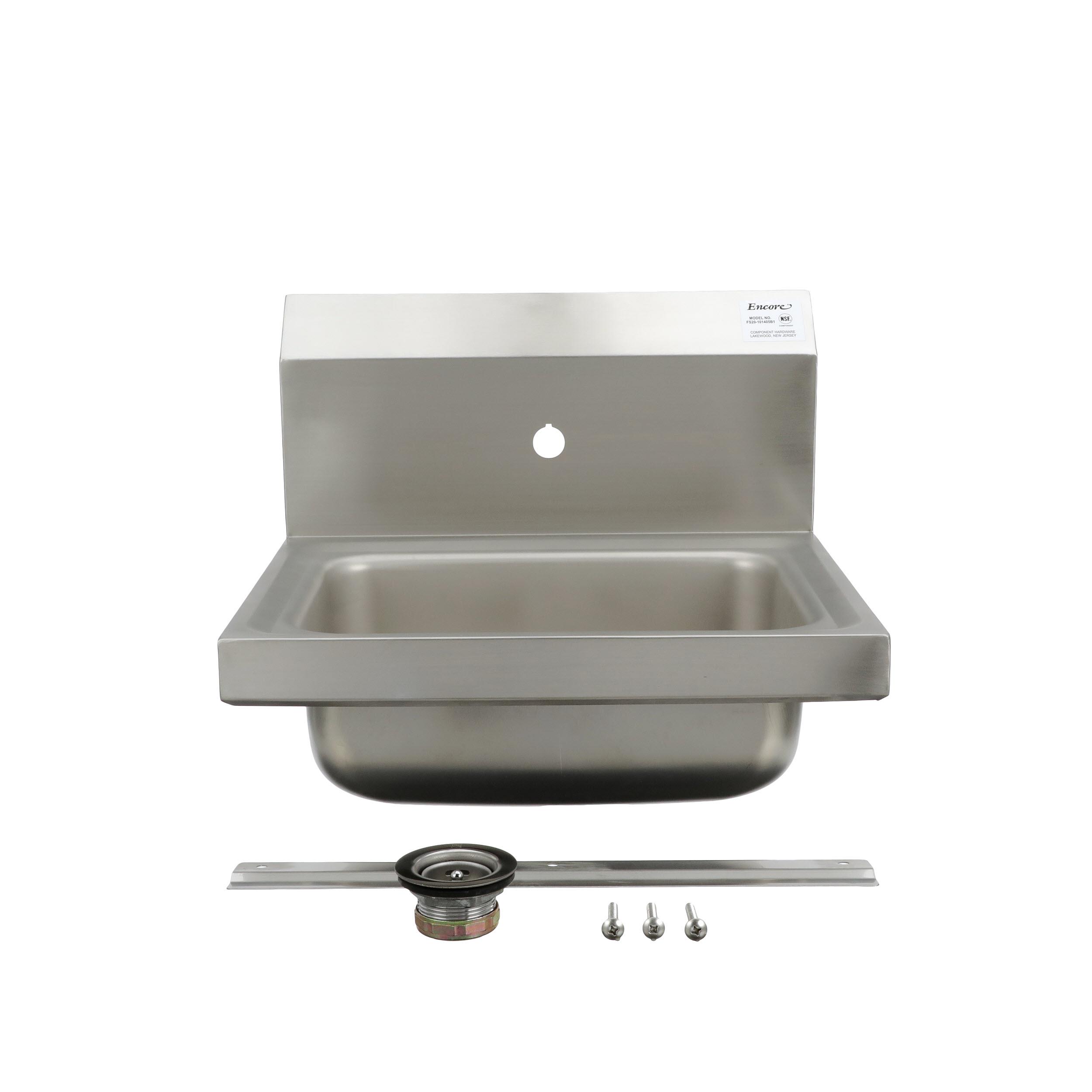 Encore® Wall Mount Type 304 Series Stainless Steel Hand Sink Single Mounting Hole 14" x 10" x 5" Deep Less Side Splash