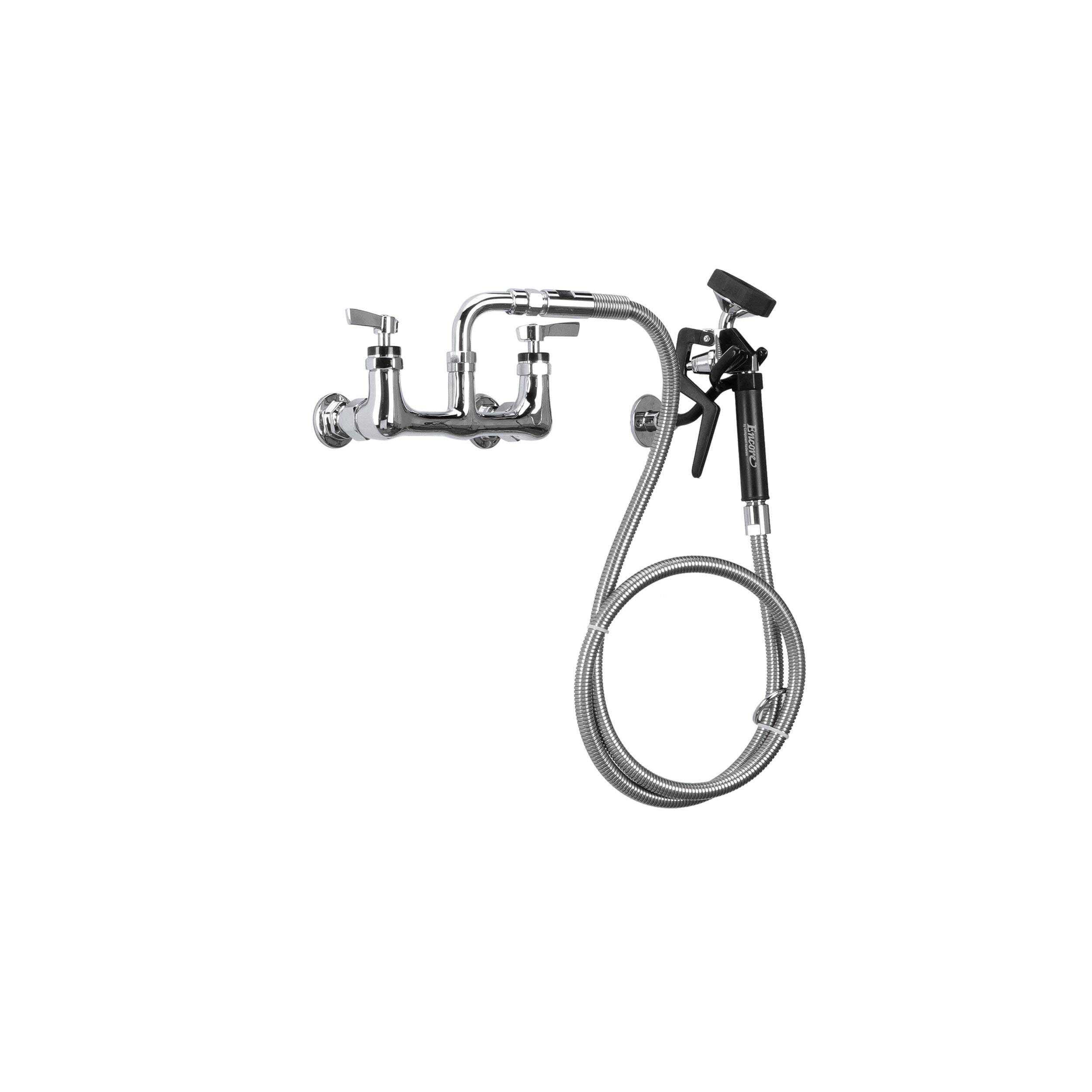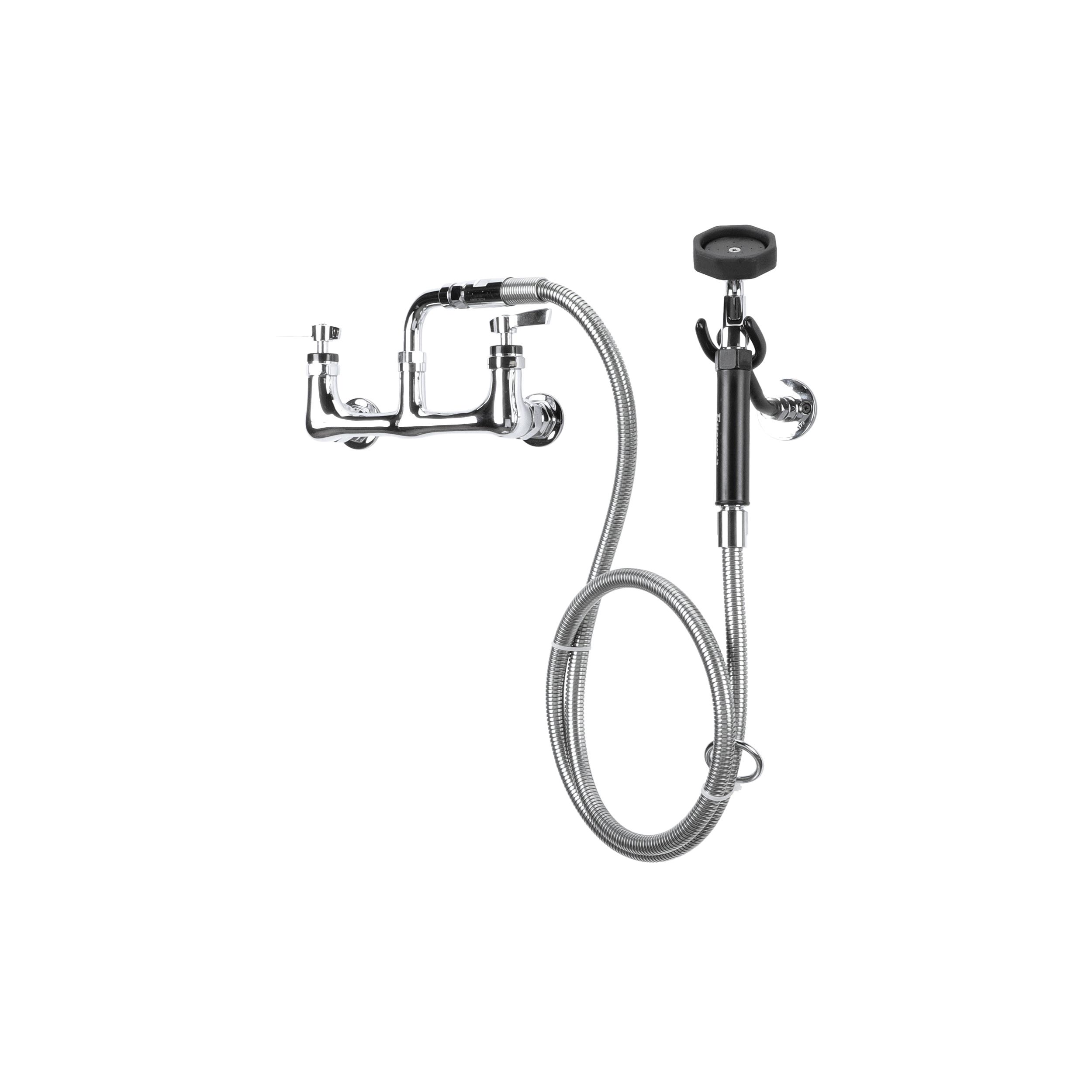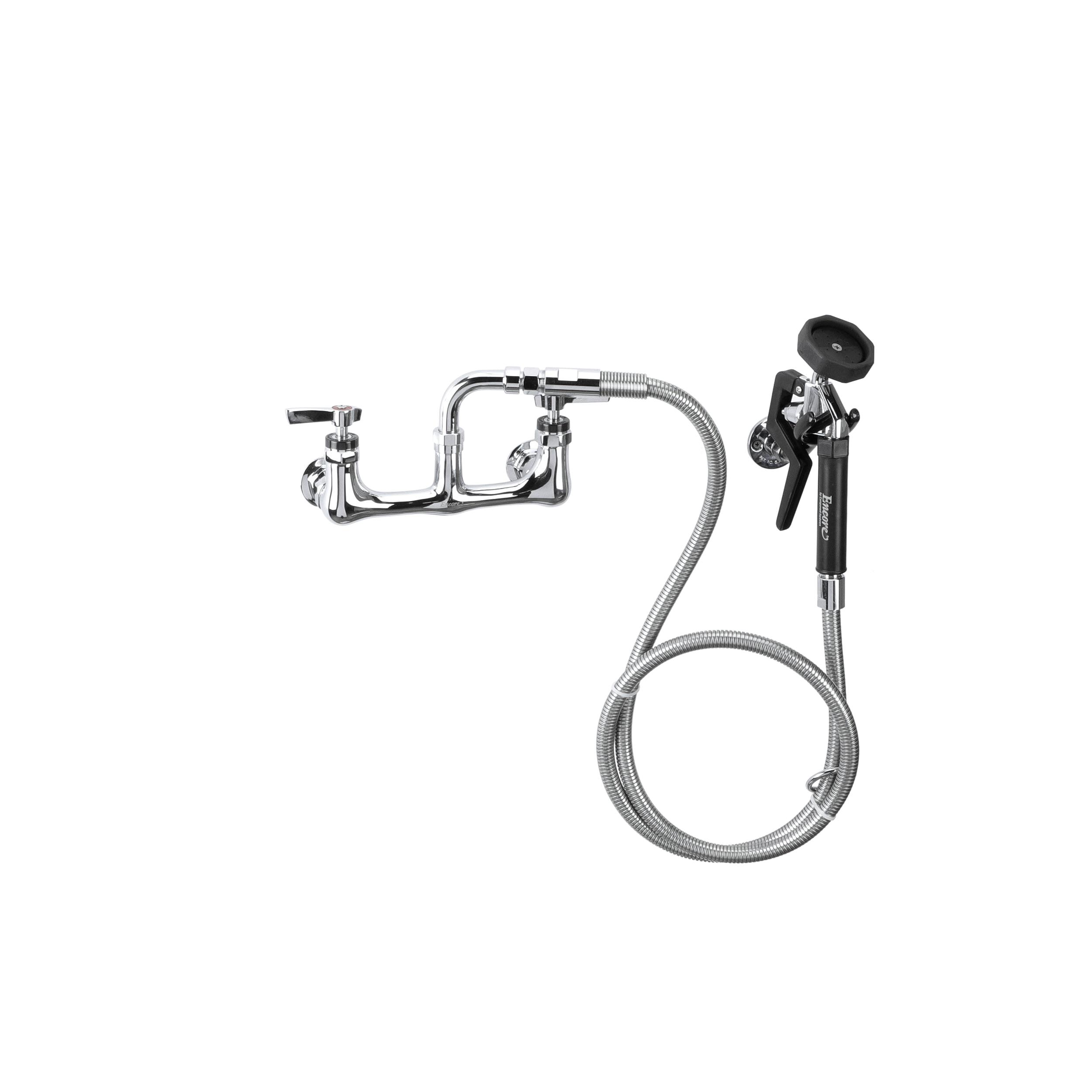 Encore® 8" OC. Brass Chrome Plated Wall Mount Utility Spray Assembly Angled Spray Head and 72" Hose