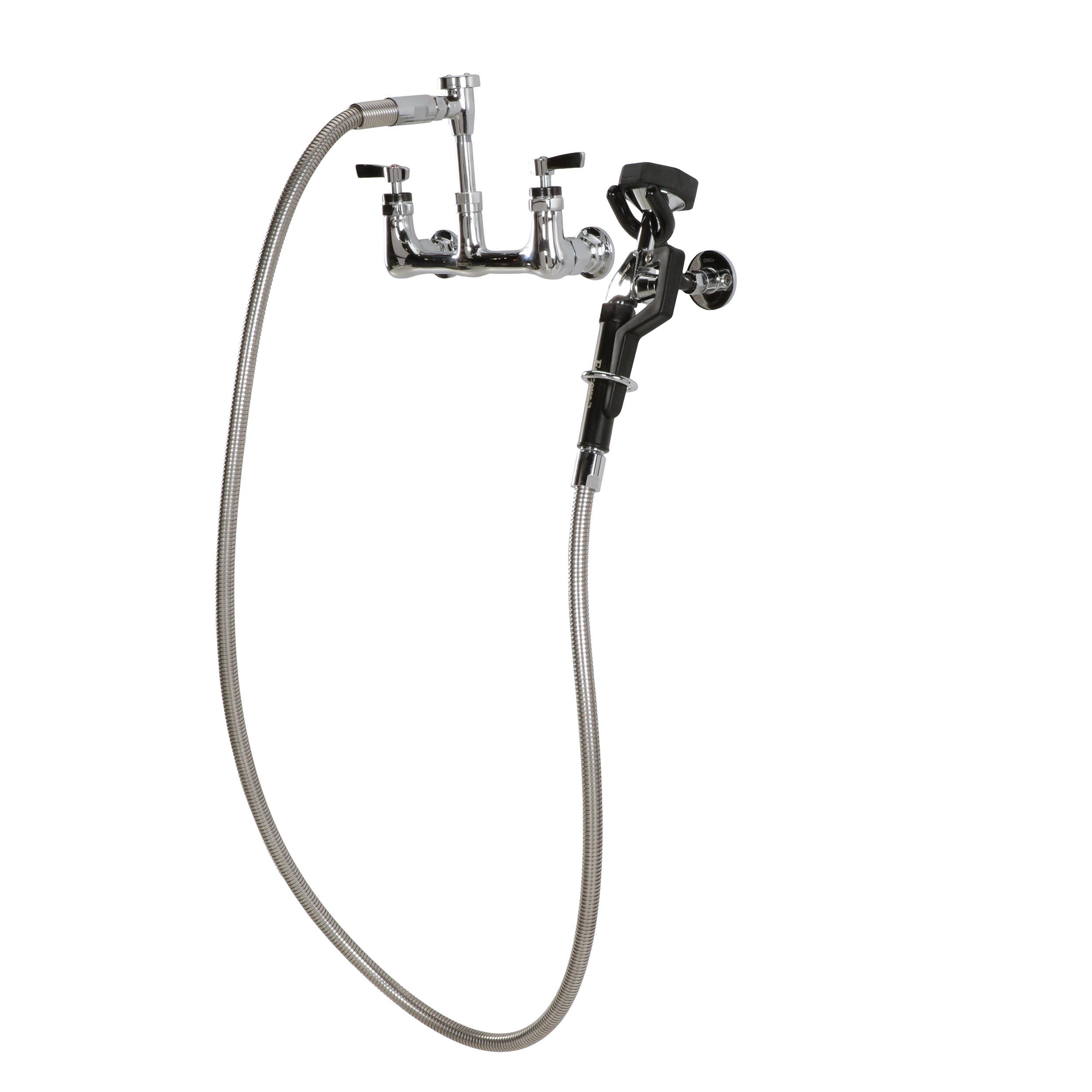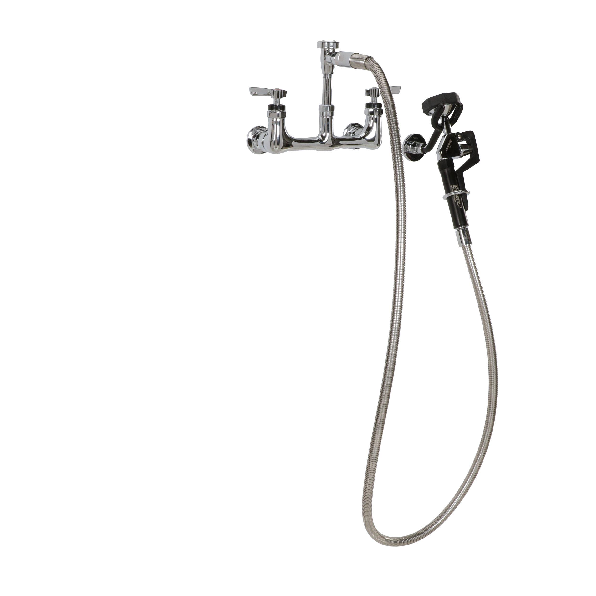 Encore® 8" OC. Brass Chrome Plated Wall Mount Utility Spray Assembly Angled Spray Head Add on Faucet with 12" Spout and 96" Hose