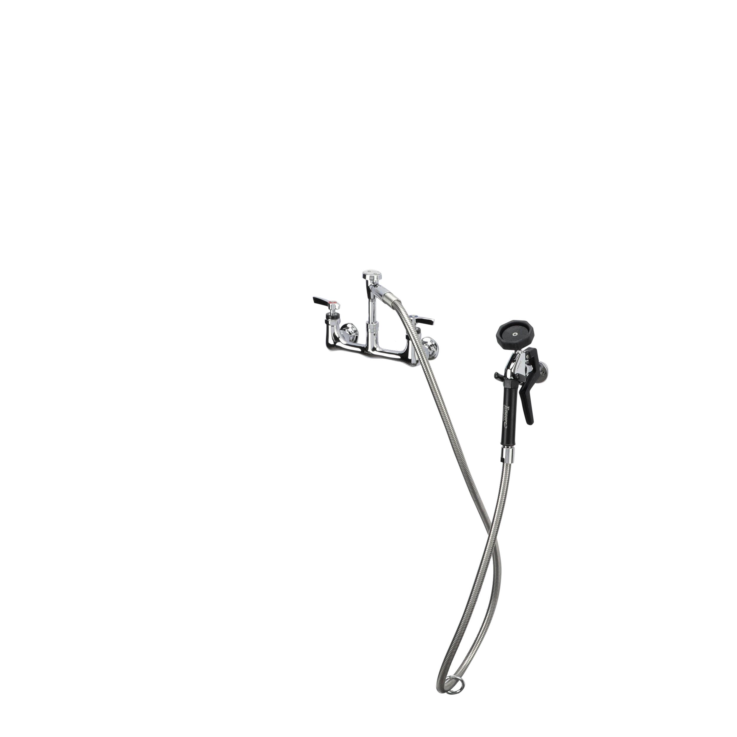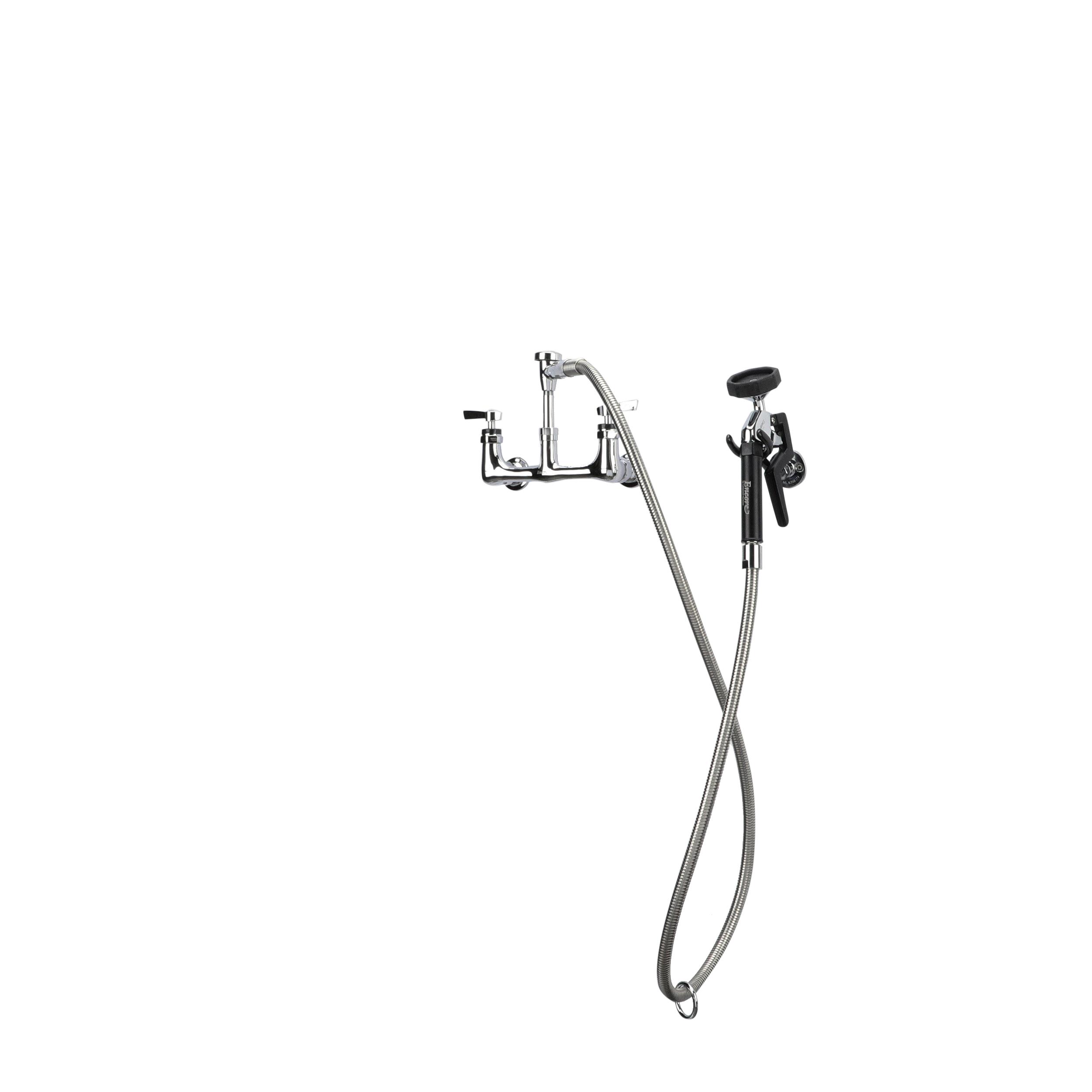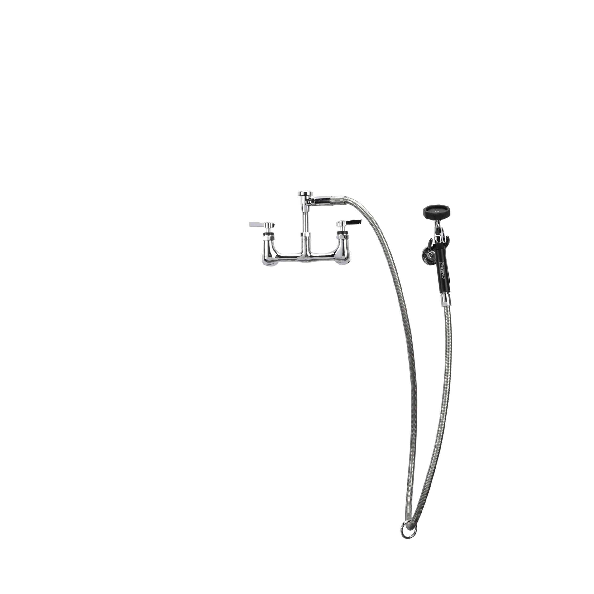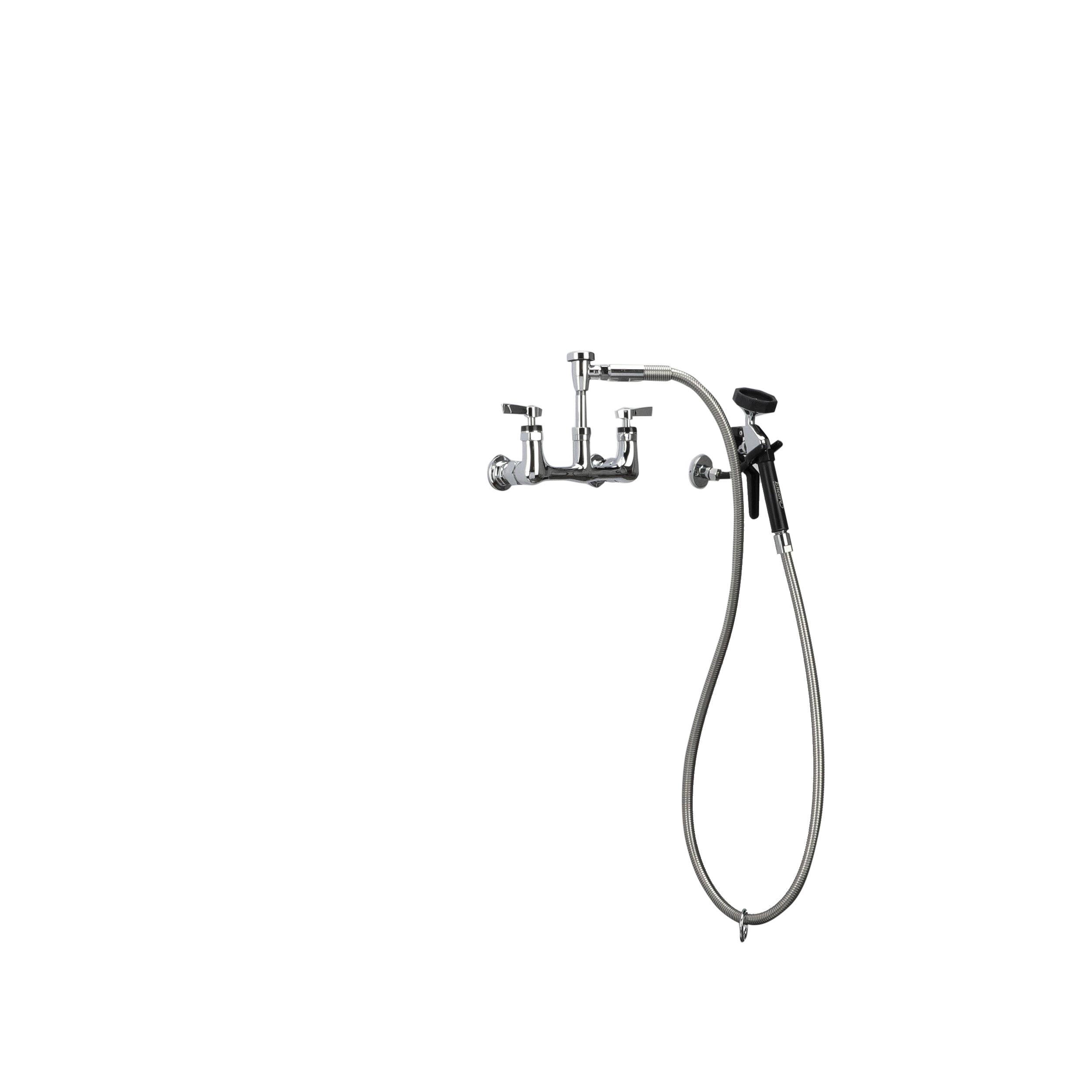 Encore® 8" OC. Brass Chrome Plated Wall Mount Utility Spray Assembly Angled Spray Head Vacuum Breaker and 72" Hose